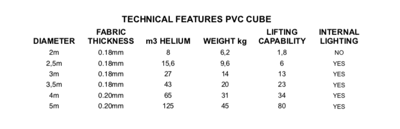 PVC Cube 100% screen printable with pressure holding valve, inflated with helium gas that allows it to fly.