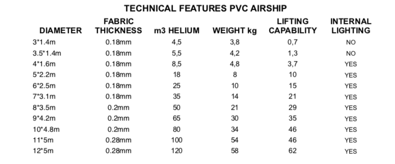 THE INTERNAL LIGHTING KIT IS AVAILABLE FOR ALL MEASUREMENTS EXCEPT FOR THE 3.5 M AND 3 M AIRSHIP.
